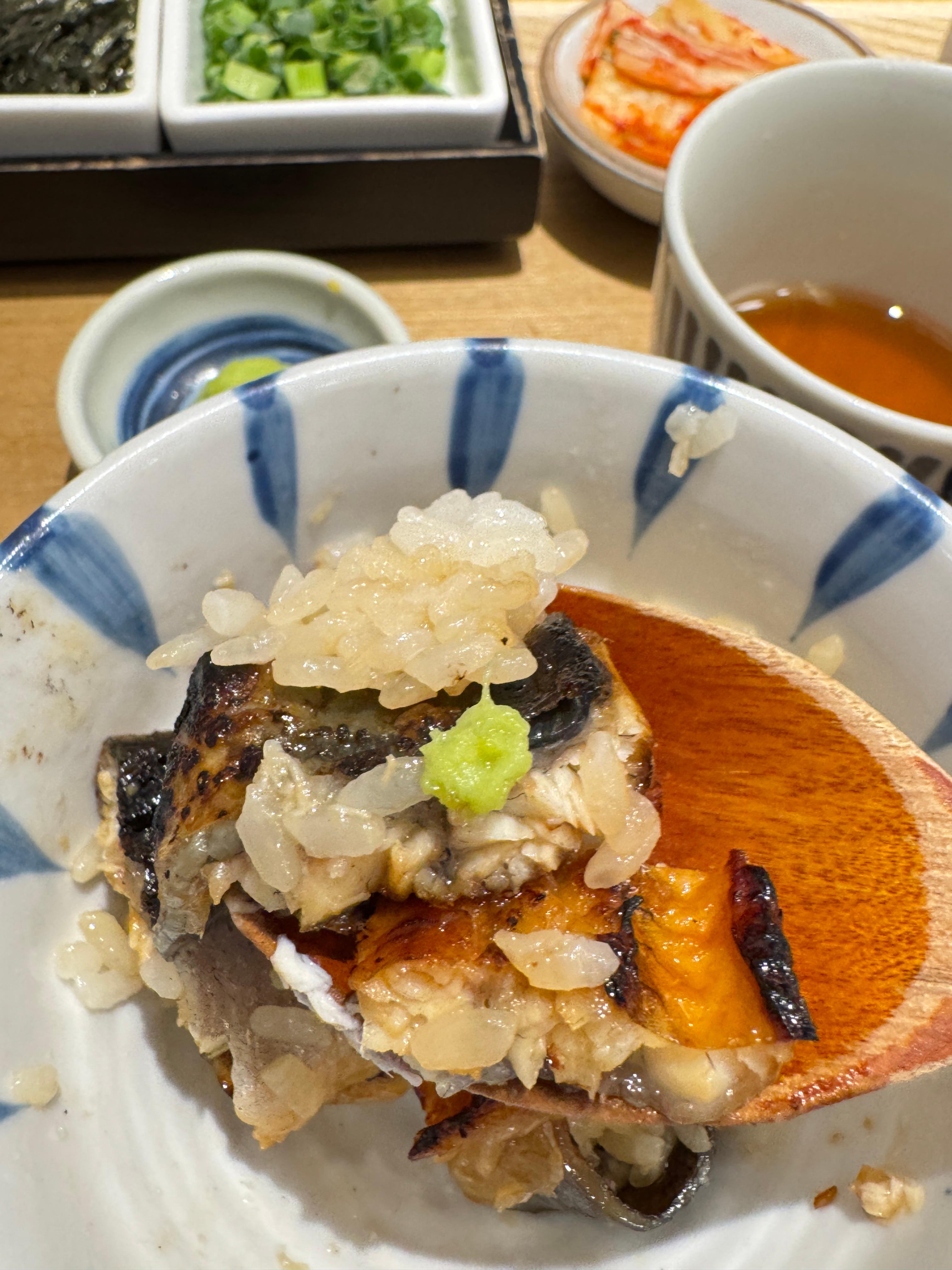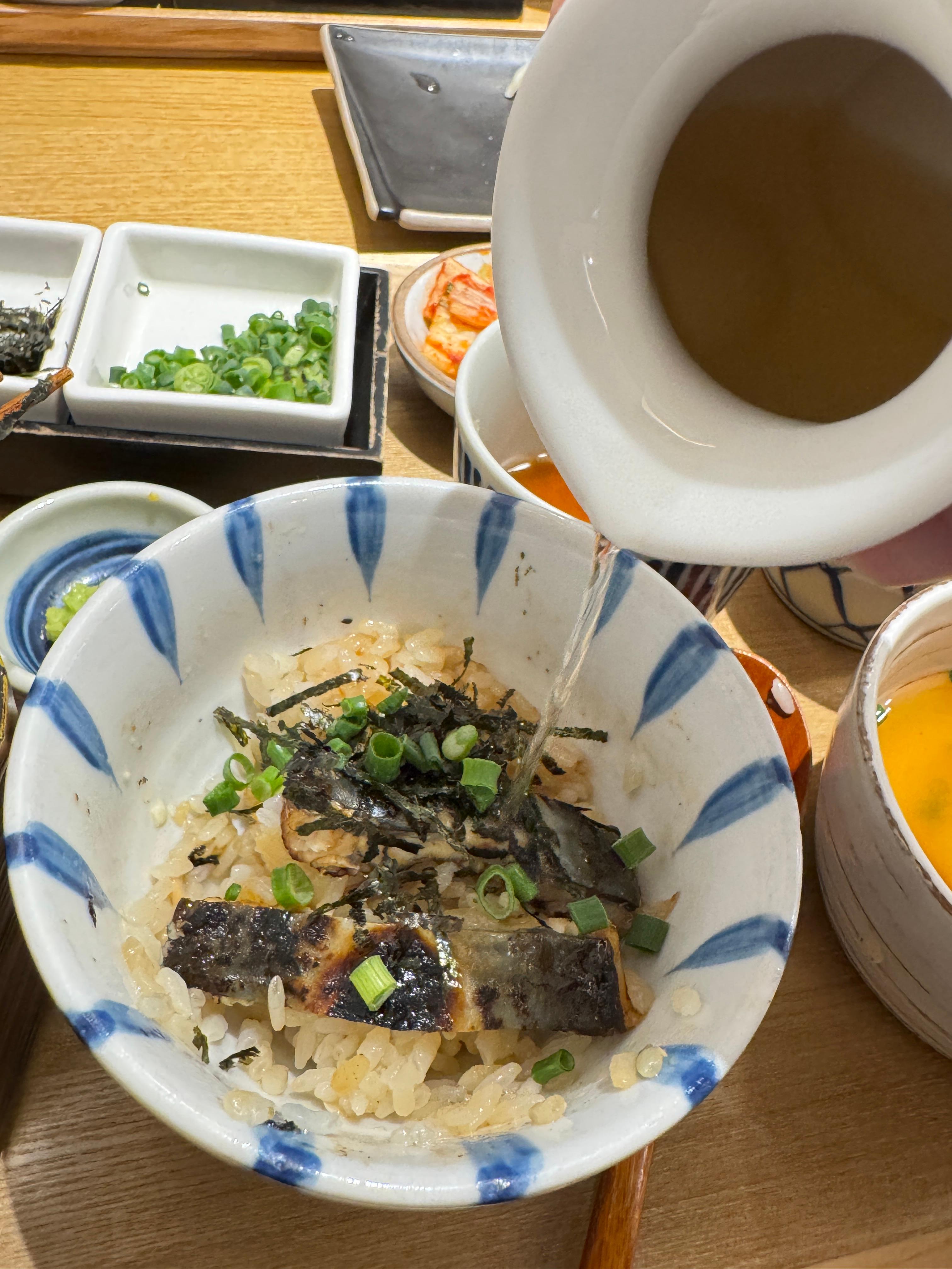 먹는 도중 약간의 느끼함이 느껴진다면, 저처럼 와사비를 아주 조금 더해보길 추천한다. 톡 쏘는 향과 알싸한 맛이 장어의 고소한 풍미를 한층 끌어올려주며, 전체적으로 더욱 깔끔하고 조화로운 맛을 완성해 준다. 김가루를 함께 곁들이면 감칠맛이 한층 더해져, 히츠마부시의 다양한 맛을 더욱 풍부하게 즐길 수 있다.