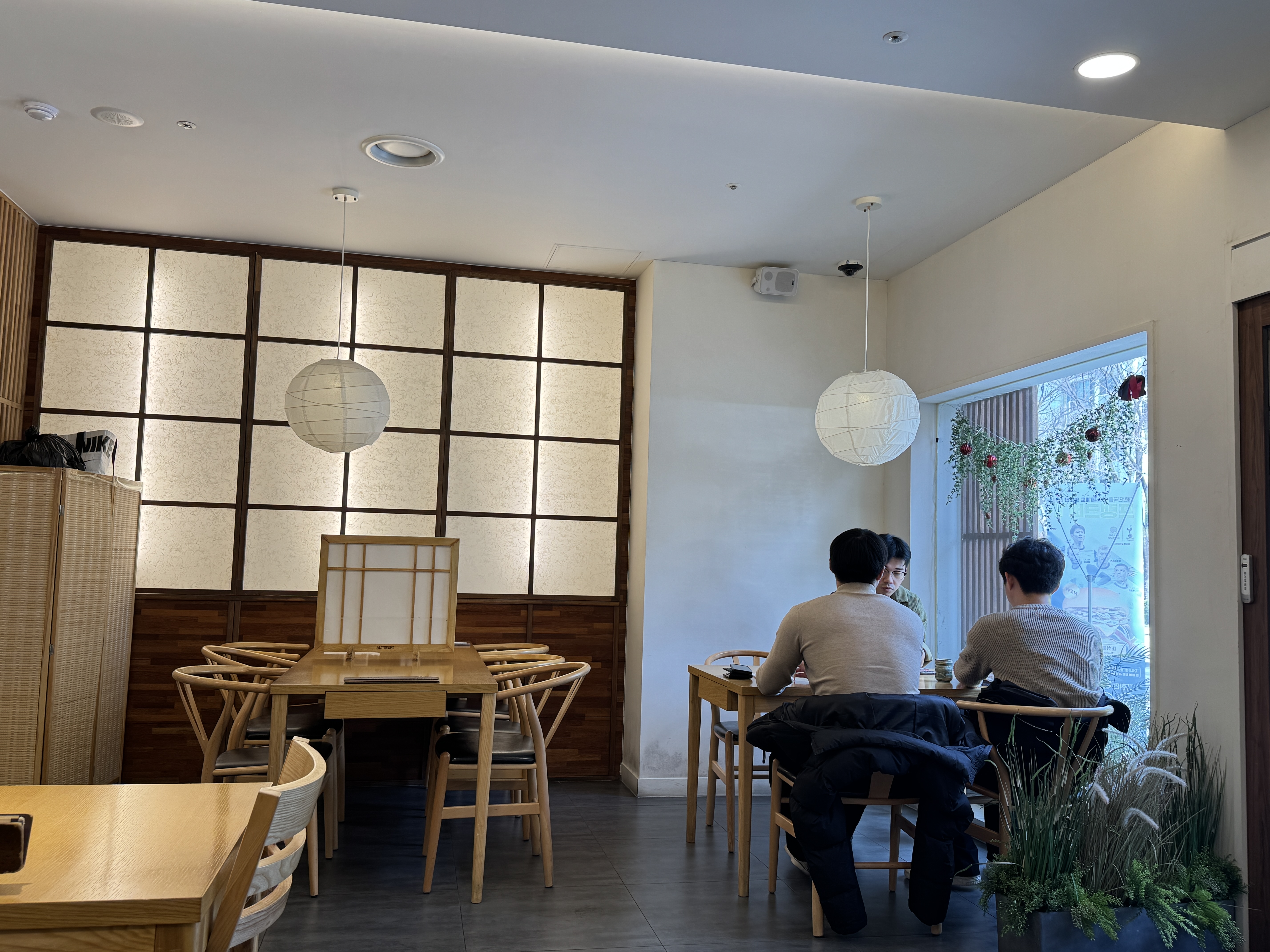 매장 내부는 7~8석 정도의 좌석이 마련되어 있으며, 좌석 간 간격이 넓어 쾌적한 분위기에서 식사가 가능합니다.