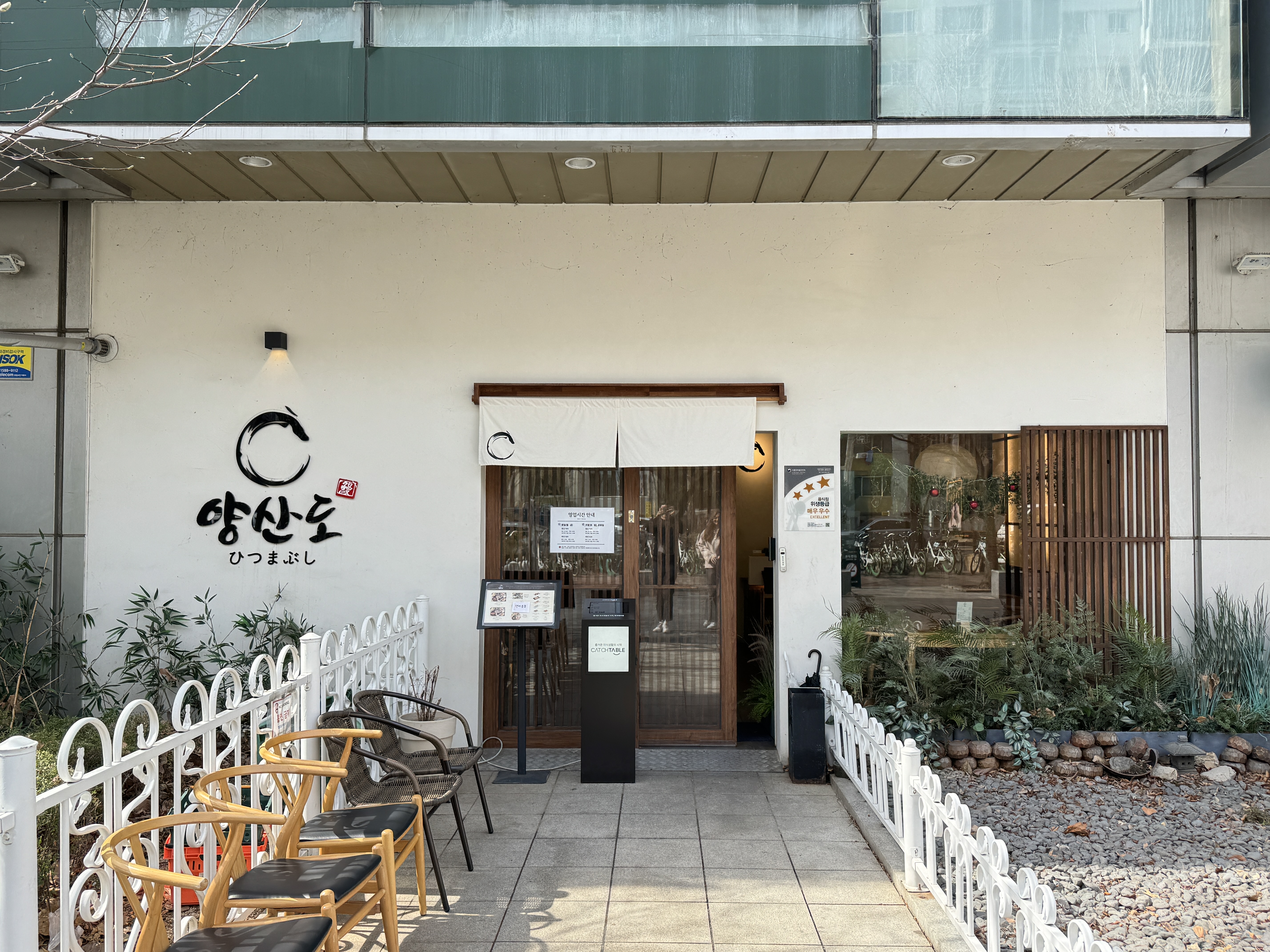양산도의 외관은 일본에서 본 장어덮밥 전문점과 비슷한 분위기를 자아냅니다.